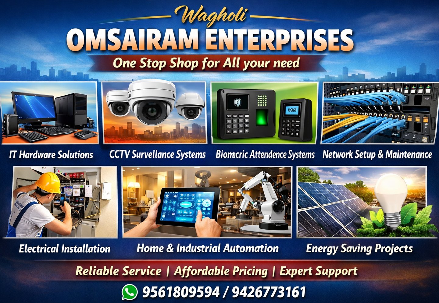 I am extremely satisfied with the IT solutions provided by omsairam enterprises. Their expertise in desktops, laptops, CCTV, networking, EPBX, and biometric systems is unmatched.